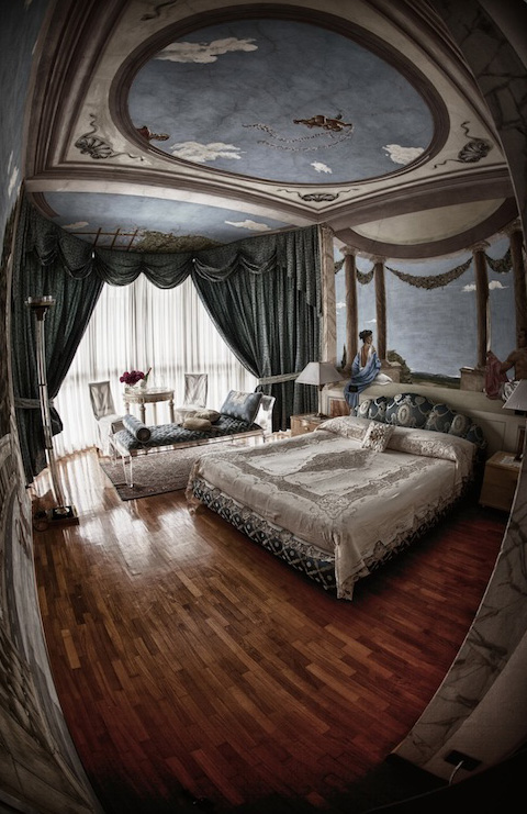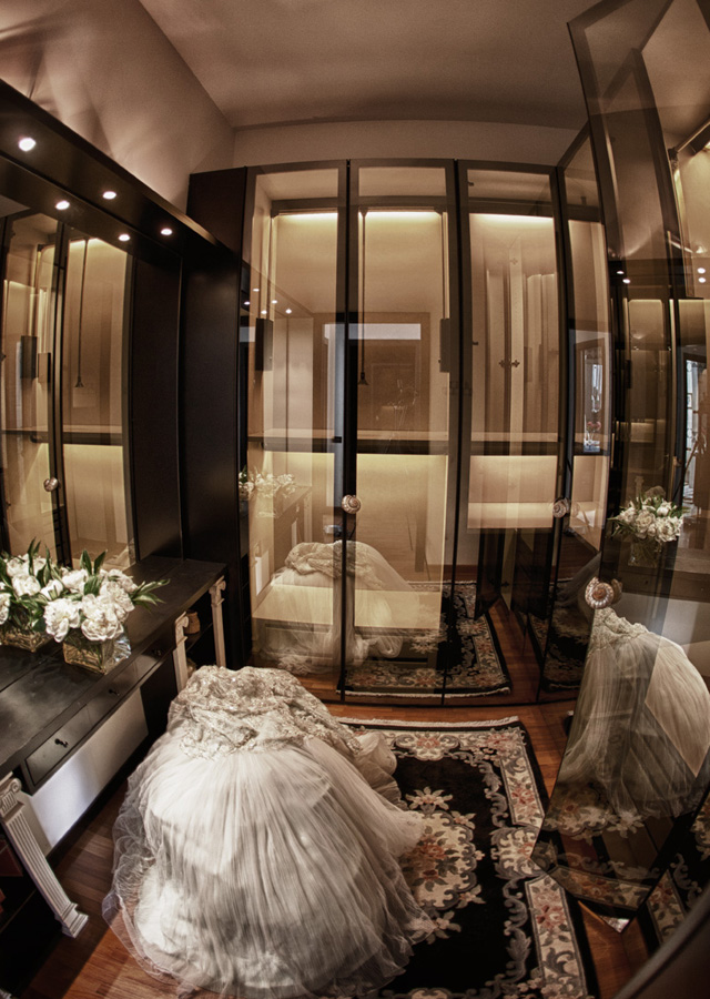 Una vetrata semicircolare inondando di luce la suite offre la spettacolare vista parco con piscina. La scelta perfetta per una coppia appena sposata che dopo una festa in grande stile e un memorabile pernottamento, può godersi un’intima e tranquilla colazione sotto il gazebo all’inglese, a due passi dalla piscina che riflette scintillando le prime luci del mattino.